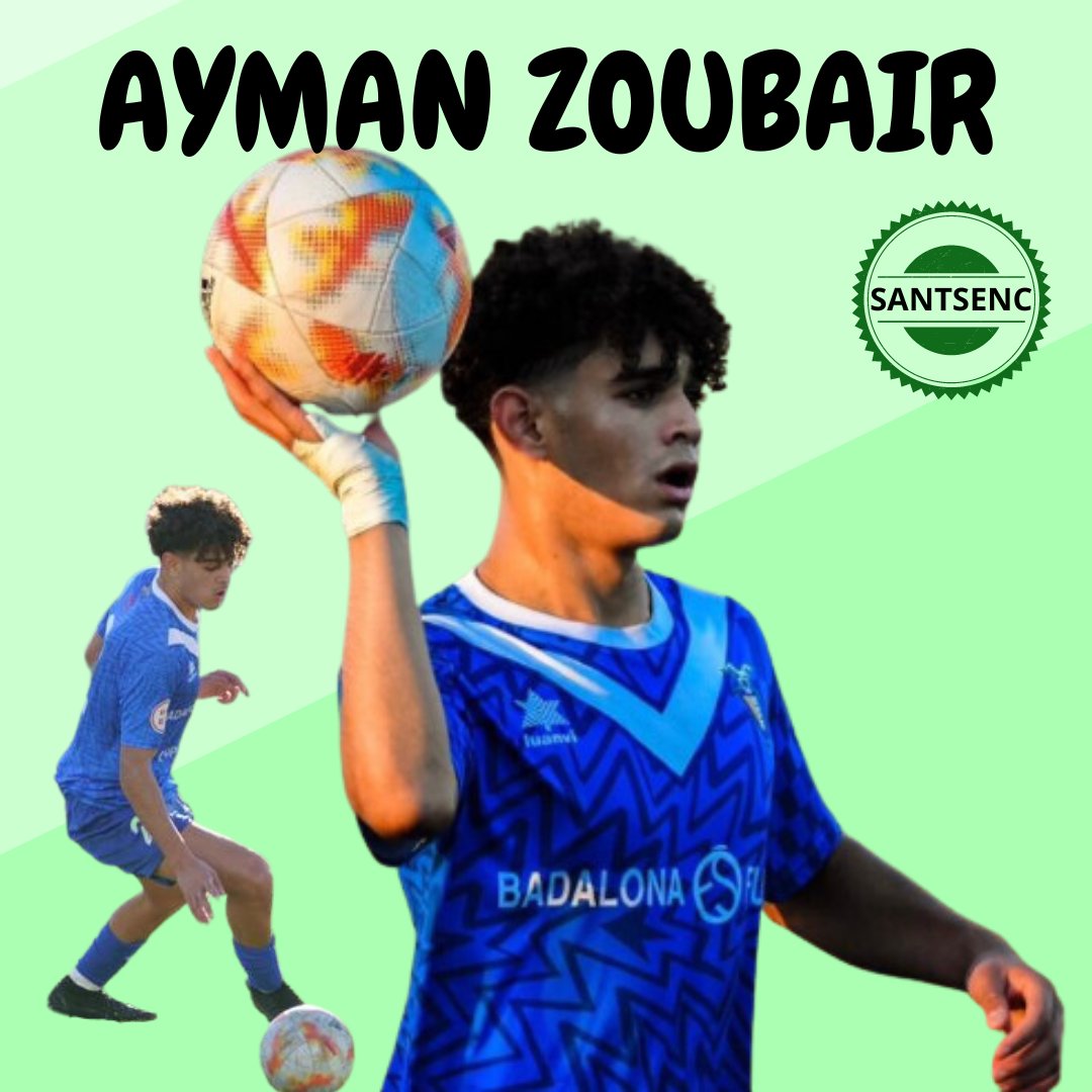 El lateral 𝐀𝐘𝐌𝐀𝐍 𝐙𝐎𝐔𝐁𝐀𝐈𝐑 procedent del @CFBadalona_ del Juvenil Divisió d' Honor.#orgullsantsenc⚪🟢 pic.twitter.com/7GiSuZ5bLW
