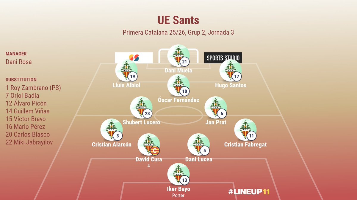 13 Iker Bayo Porter; 3 Cristian Alarcón, 4 David Cura C, 5 Dani Lucea, 11 Cristian Fabregat; 23 Shubert Lucero, 6 Jan Prat; 10 Óscar Fernández; 19 Lluís Albiol, 17 Hugo Santos; 21 Dani Muela