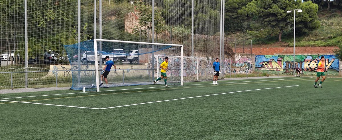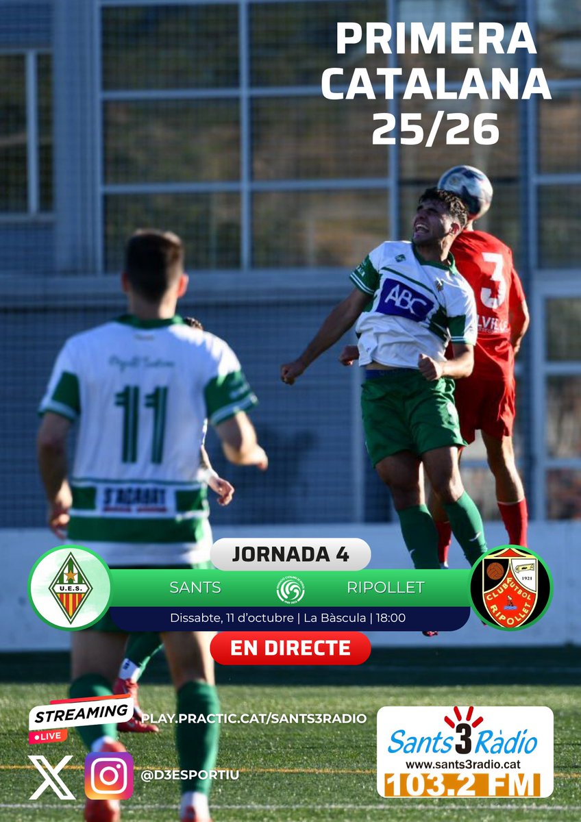 Imatges de l'escalfament previ al partit. Els jugadors de la Unió Esportiva de Sants i el Club de Futbol Ripollet ja es preparen a la gespa de La Bàscula. A les 18:00 ens sumem a l'@Adripubill des de La Satalia!